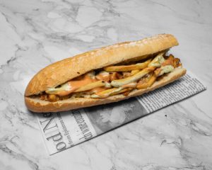 Heerlijke pittige Merguez worstjes met patat in een royale broodje.